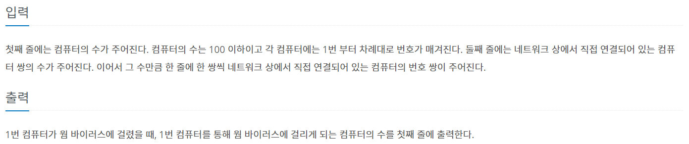 어느 날 1번 컴퓨터가 웜 바이러스에 걸렸다. 컴퓨터의 수와 네트워크 상에서 서로 연결되어 있는 정보가 주어질 때, 1번 컴퓨터를 통해 웜 바이러스에 걸리게 되는 컴퓨터의 수를 출력하는 프로그램을 작성하시오.